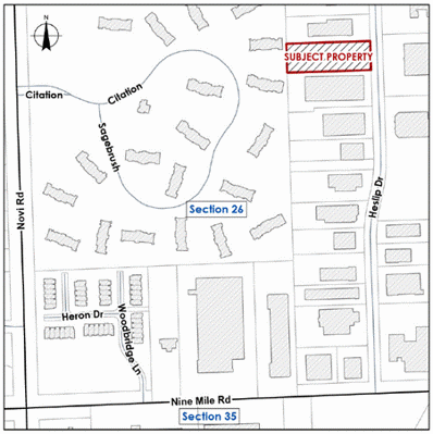 NOTICE IS HEREBY GIVEN that the Planning Commission for the City of Novi will hold a public hearing on Wednesday, February 25, 2026, at 7:00 P.M. in the Novi Civic Center, 45175 Ten Mile Road, Novi, MI to consider ARMSTRONG WAREHOUSE, JSP25-34, FOR SPECIAL LAND USE AND PRELIMINARY SITE PLAN APPROVAL.The subject property is located at 22735 Heslip Drive and consists of approximately 1.31 acres, situated north of Nine Mile Road and east of Novi Road (Section 26). The property is zoned I-1 (Light Industrial). The applicant proposes construction of a 4,000 square-foot warehouse/workshop building.